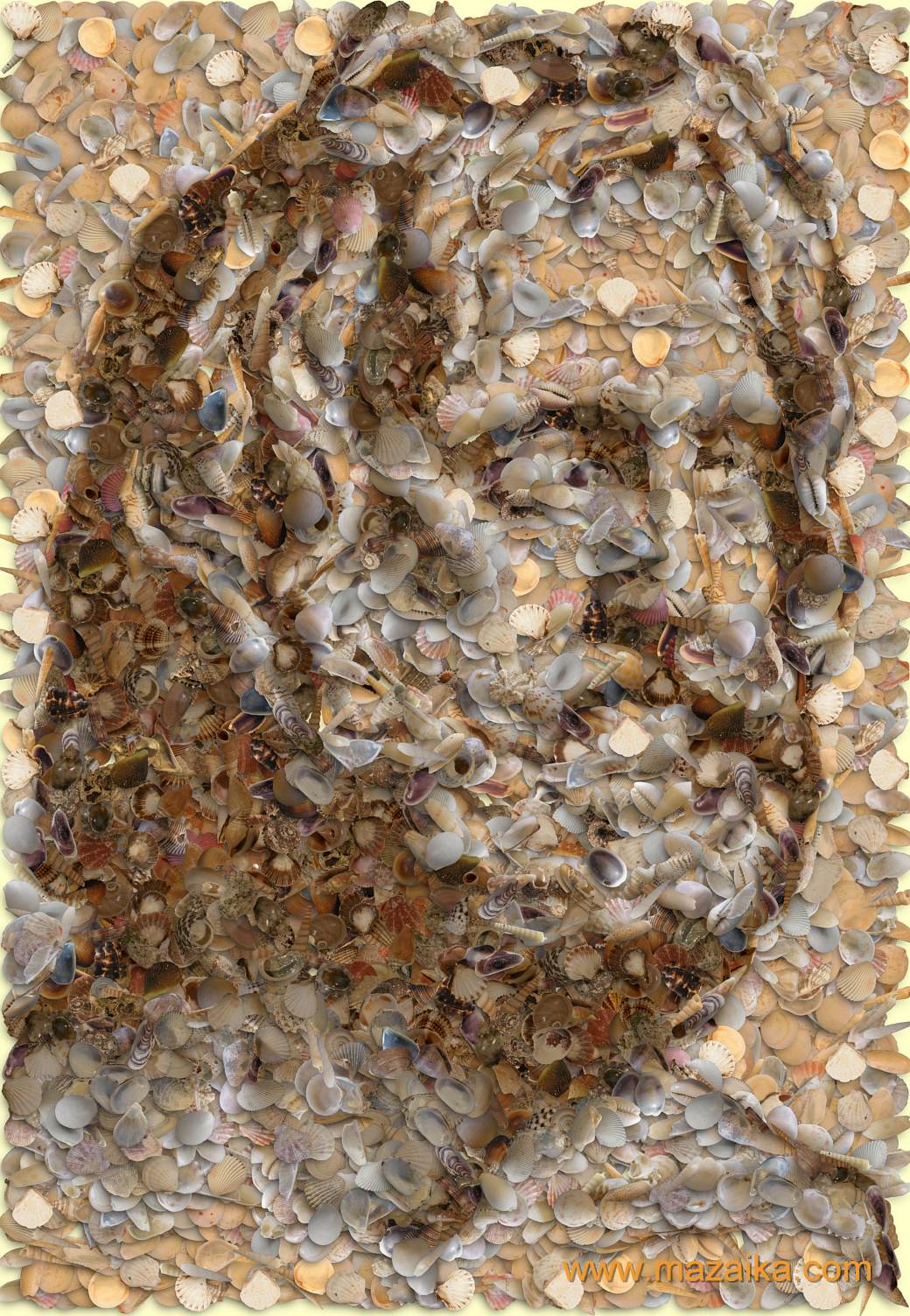 740 different seashell photos were used for this composition. You may purchase seashell objects library and use it for your own compositions.